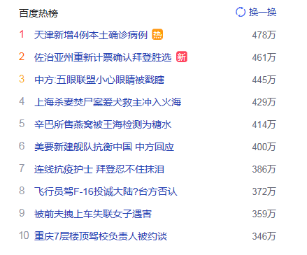 1. 天津新增4例本土確診病例 獵頭熱度熱點(diǎn)478萬