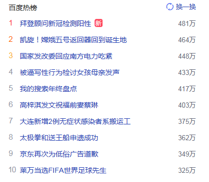 1. 拜登顧問新冠檢測(cè)陽性 獵頭熱度熱點(diǎn)481萬