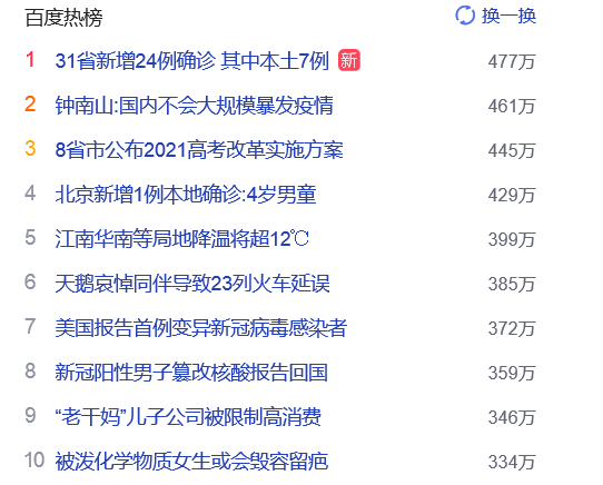 2. 鐘南山:國內(nèi)不會大規(guī)模暴發(fā)疫情 獵頭熱度熱點461萬